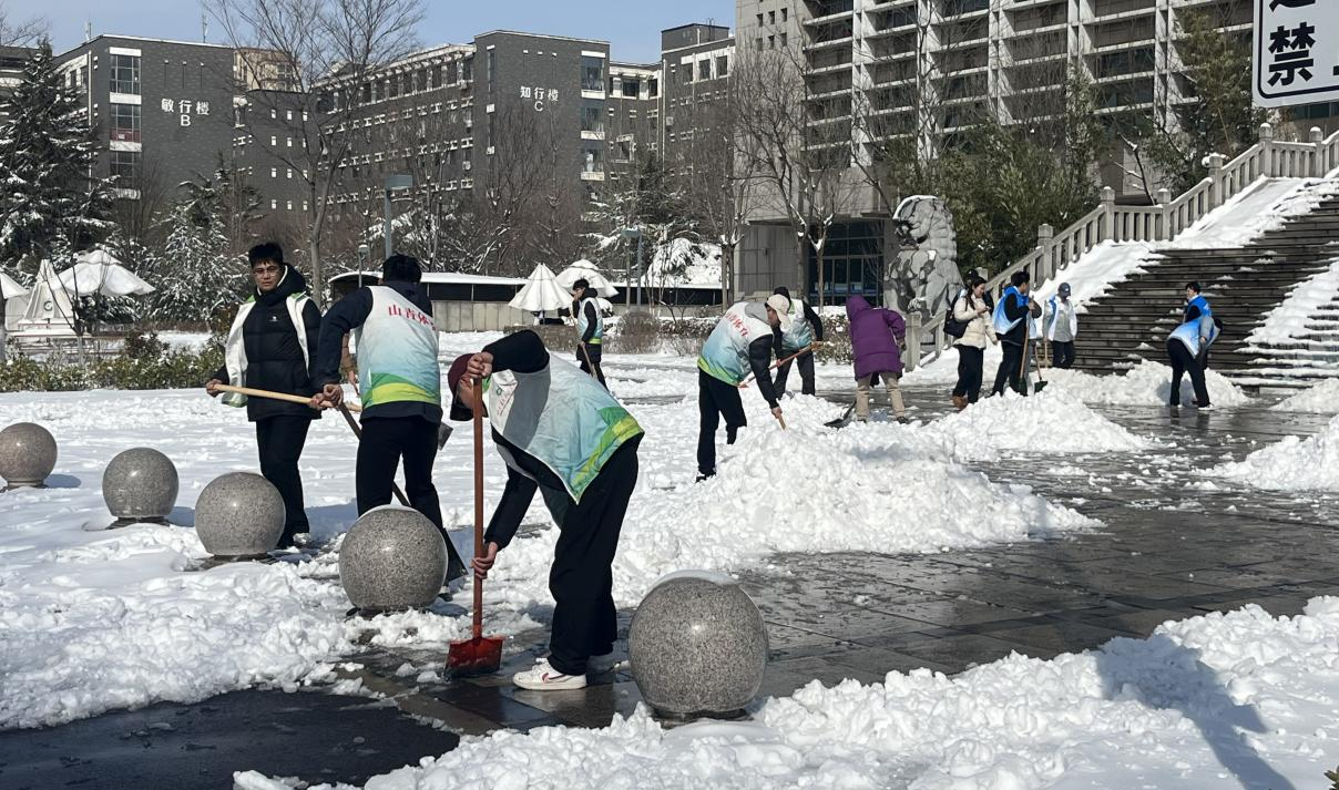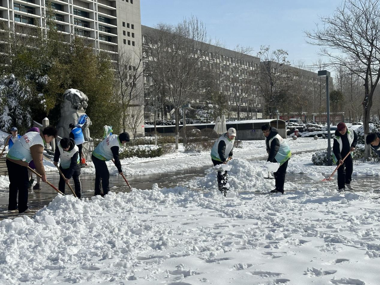 行动前期,学院提前筹备扫雪方案,将校园重点区域分配给不同的师生,明确各小组职责,确保扫雪工作全面、高效开展。任务下达,学院师生奔赴各自区域,拿起铁锹、扫帚等工具,开启积雪清理行动。师生们互相配合、齐心协力,井然有序地开展积雪开展工作,开辟出一条条安全通道。