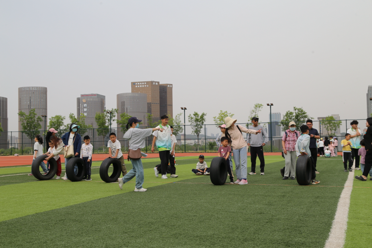 在体育互动环节,体院学子与山东省康复医院的自闭症儿童及家长展开一对一结对,通过“轮胎接力”“篮球投框”“足球踢进门”等游戏定制化体育项目,引导孩子们在运动中释放天性、提升协作能力。康复医院专家表示,体育运动能有效促进自闭症儿童感知觉发展,而青年志愿者的耐心陪伴更能增强他们的社交信心。现场一位家长感慨道:“看到孩子主动拉起志愿者的手,眼眶湿润了,这种包容的环境太珍贵。”
